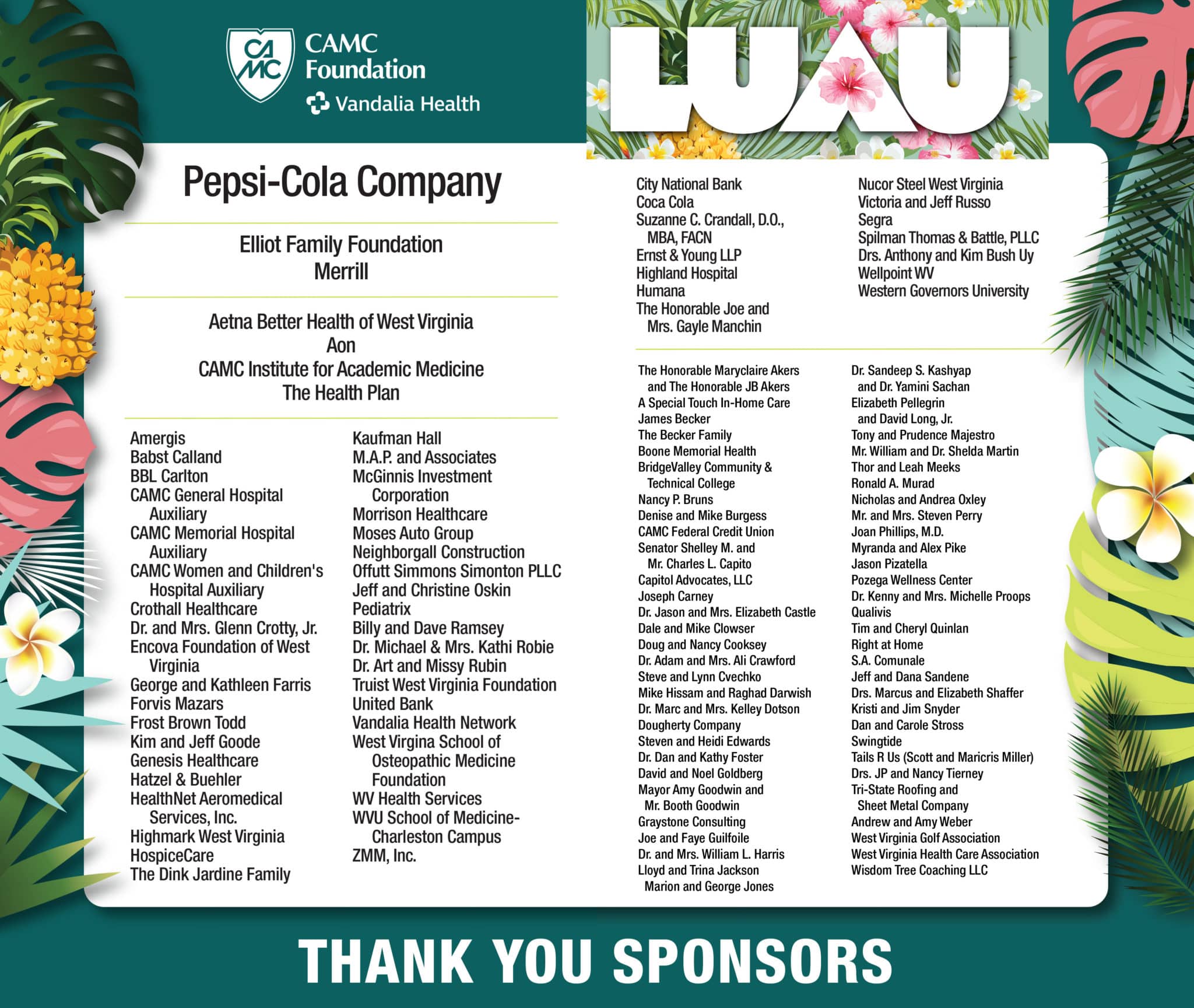 A heartfelt thank you to our generous sponsors and attendees for making the 2025 CAMC Foundation Summer Luau an overwhelming success!